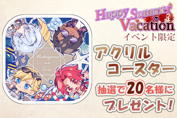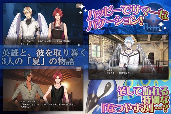 株式会社エレメンツリー(代表取締役:小川 邦弘、所在地:大阪府大阪市淀川区)は、本日よりスマホ向けBLゲームアプリ「あなカレ」にて、最新作『啼骸の鳥』(CV.ししゃも、つやまろ、和音、沖野靖広etc)新イベント、「Happy Summer Vacation」の提供を開始しました!