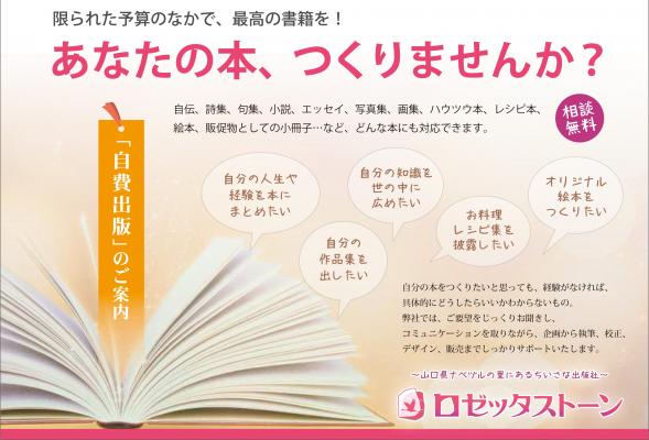 株式会社ロゼッタストーン(所在地:山口県周南市、代表取締役:弘中百合子)は8月20日、創立20周年を迎えたのを機に自社サイト「ロゼッタストーンweb」をリニューアルし、新たに自費出版事業を開始しました。