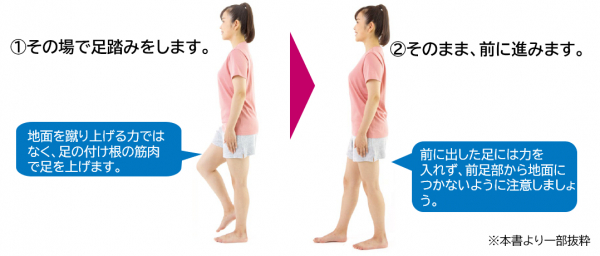ゆるかかと歩きで最も大切なのは、「かかと側重心で歩くこと」です。本書内では、詳しいゆるかかと歩きの方法のほか、正しく重心をかけるコツ、トレーニング方法についても説明しています。
