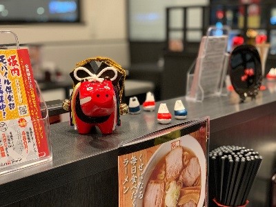 店内に入ると、会津・喜多方の民芸品や、ゆかりのある小物が出迎えてくれます。「ホッとする」空間で、ひとときの癒しもラーメンと一緒にご提供いたします。