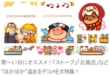 コンテンツ内容:寒~い日にオススメ!「ストーブ」「お風呂」など “ほかほか”温まるデコメを大特集!