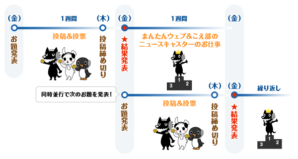 その週のお題を発表。エントリー受付開始。※投票は同時に開始
