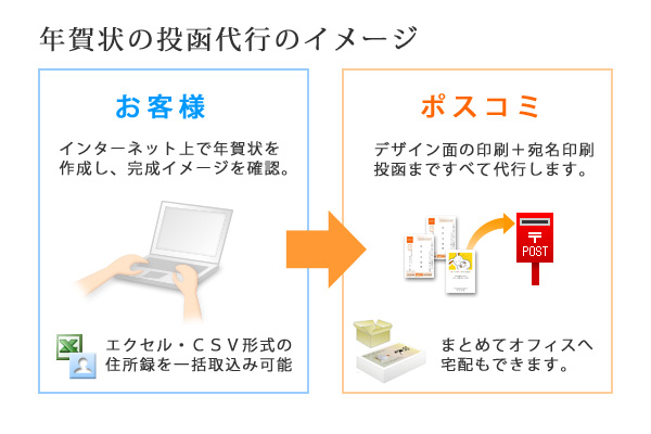 年賀状の投函代行サービス ポスコミの詳細はこちら