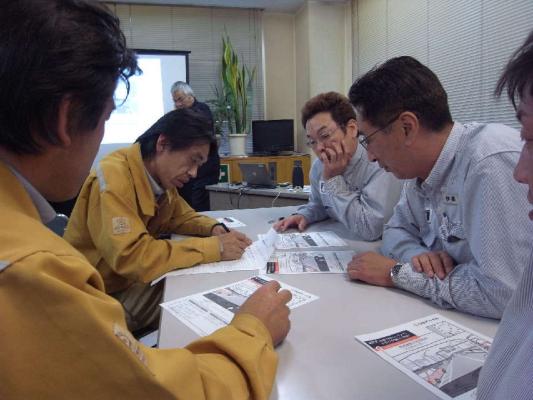講習会場は重量品輸送が主力の当社君津支店。同支店ドライバー19 名が参加し、トレーラー特有の構造や挙動特性、事故要因などの詳しい解説を受けました。また、防衛運転を目指して危険予知トレーニングなどが行われました。日頃、顔を合わせないドライバー同士が活発に意見交換をするなど学び合う絶好の機会となりました。