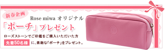 ローズストーンで印鑑をお買い上げの方に「Rosemiwa オリジナルポーチ」を先着50名様へ
