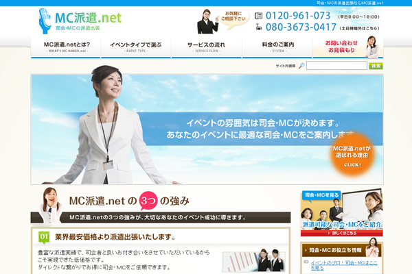 シュチュエーション別に・イベント司会・MC(http://www.mc-haken.net/event/)・結婚式司会・MC(http://www.mc-haken.net/wedding/)・セミナー司会・MC(http://www.mc-haken.net/seminar/)・展示会ナレーター(http://www.mc-haken.net/expo/)