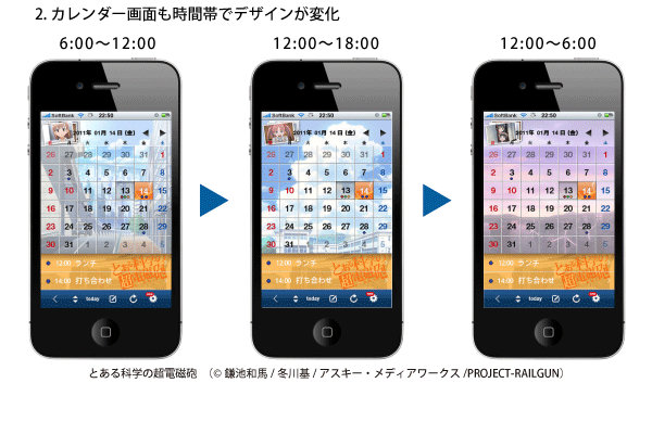 2.カレンダー画面も時間帯でデザインが変化