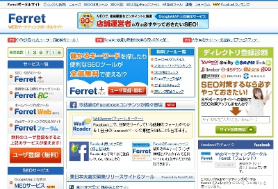 Ferretは、SEO・SEM対策に便利な無料ツールサイト『Ferret PLUS(フェレットプラス)』( http://tool.ferret-plus.com/ )や簡単無料ホームページ作成ツール『Ferret WEB(フェレットウェブ)』( http://web.ferret-plus.com/ )はじめとして、WEBサイト運営に役立つ情報やツールをワンストップで提供しております。