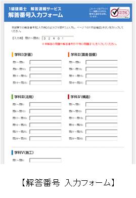 本サービスは、総合資格学院が毎年実施している“建築士学科試験の無料採点サービス”です。携帯電話、スマートフォン、パソコン等からご自身の解答番号を入力していただければ、当日のうちに採点結果をメールでお知らせします。毎年多くの受験生の方々にご利用いただき、ご好評をいただいております。