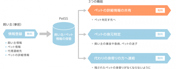 また、同日より、これまでの2つの機能(無料)に加えて、新たに3つ目の機能として、ペットの預け先の人と『ペットの詳細情報を共有する機能』を追加いたしました。