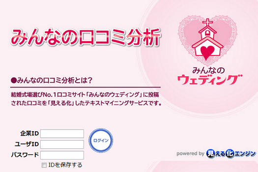 20万件以上の投稿件数を誇る、結婚式場選びNo.1口コミサイト「みんなのウェディング」※( http://www.mwed.jp/ )を運営する株式会社みんなのウェディング(本社:東京都中央区 代表取締役:飯尾慶介)は、株式会社プラスアルファ・コンサルティング(本社:東京都港区 代表取締役:三室克哉)と協業し、業界初の試みとして、寄せられた口コミの内容を解析し、分析するツール「みんなの口コミ分析」を4月1日に正式リリースいたします。