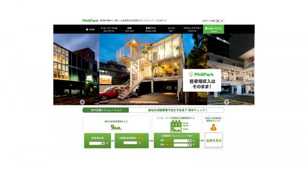 地主(駐車場オーナー)向けのフィル・パークサイト(www.philpark.jp)では、「あなたの駐車場ではどうなる?簡単チェック!空中店舗シミュレーション」と称し“駐車場+空中店舗”というフィル・カンパニー独自の新しい土地活用方法を地主(駐車場オーナー)が実施した場合に投資利回りや投資回収期間の概算がすぐにわかるシステムを導入しました。これにより、今まで馴染みのなかった空中店舗の経済的なメリットが簡単に体感いただけるようになっております。