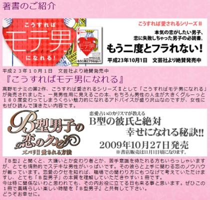 著書:B型男子の恋のクセ 2009年出版