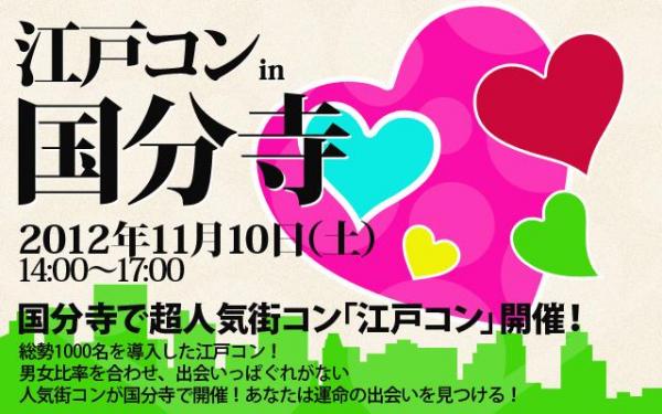 街コンが国分寺にやってくる!11月10日江戸コンin国分寺が開催決定!リリース本文合コンで、地域活性化をコンセプトにし、今、テレビやインターネットで話題の街コン。