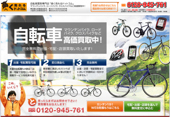 新品・中古品の自転車を高価買取する『高く売れるドットコム』買取専門ページを2012年11月12日にオープン致しました。