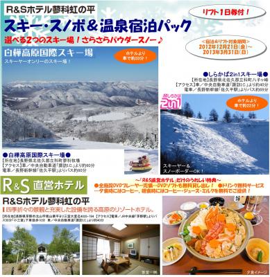 <リフト1日券付スキー・スノボ+蓼科高原「R&Sホテル」温泉宿泊プラン>