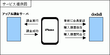 「dodaii」は、iPhone SDK3.0から提供されるアプリ内課金機能の購入履歴を代行管理するサービスです。iPhoneデベロッパーがアプリ内課金機能を利用する場合、購入履歴の管理や、それに伴う会員管理、売り上げ管理などのシステムを独自に開発する必要がありますが、「dodaii」を利用すれば、各種用意された管理機能を呼び出すだけで課金管理を実現できます。